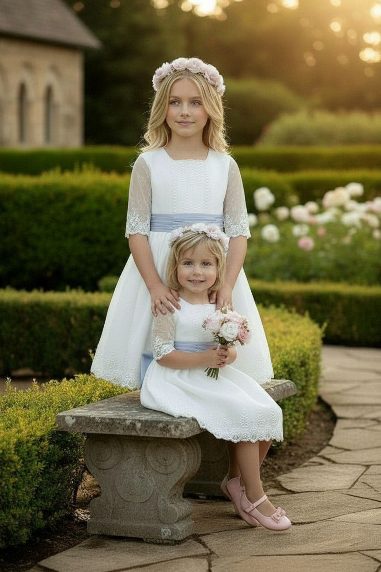 Hay vestidos que unen a la familia en un mismo recuerdo. Este diseño de moda de ceremonia infantil está pensado para niñas que acompañan momentos importantes: llevar Arras o anillos en una boda, acompañar a un hermano en su Comunión, o vivir una celebración especial con elegancia y dulzura.