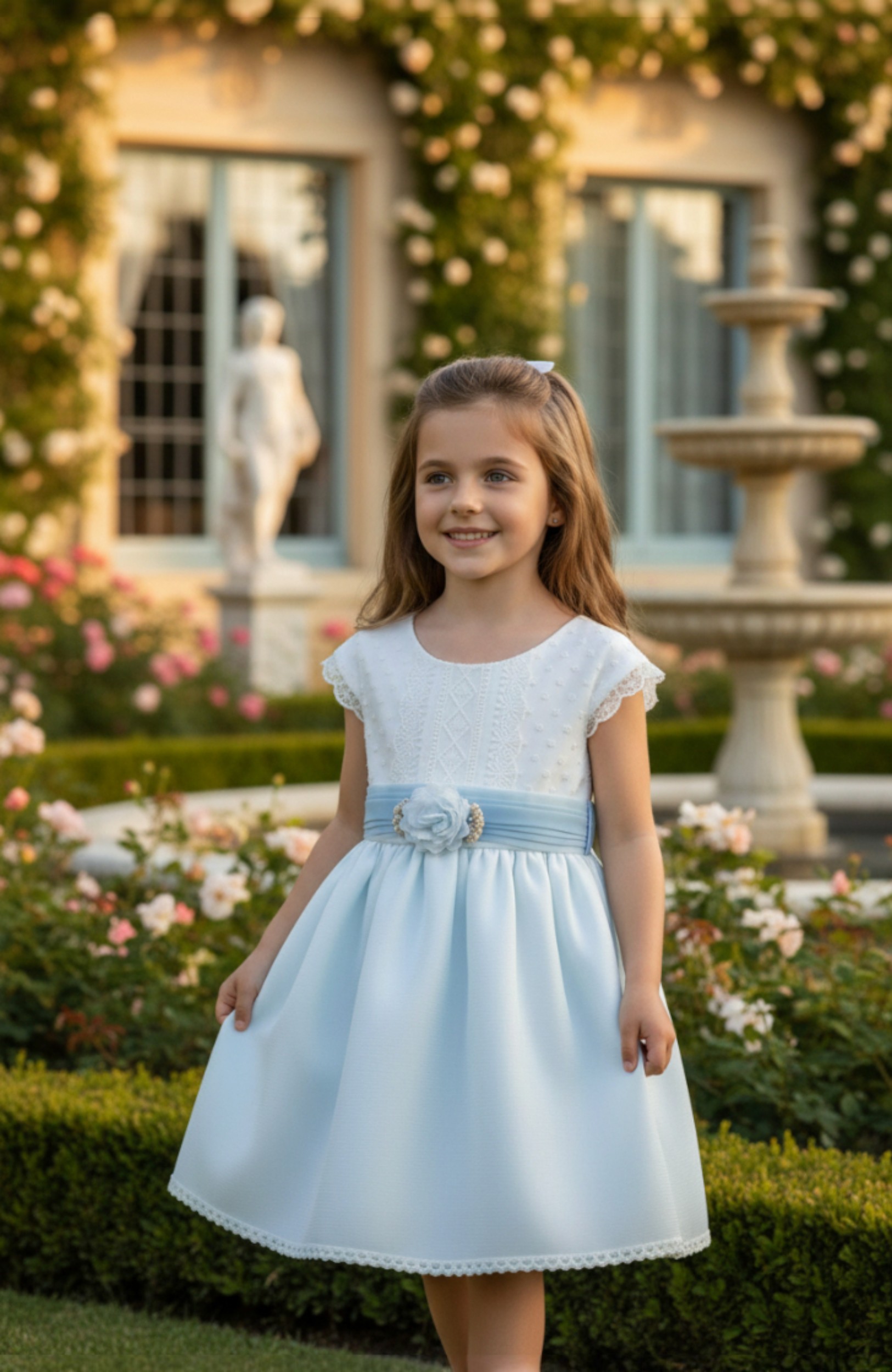 Hay días que empiezan con una trenza, unos zapatos bonitos… y una emoción que se nota en la mirada. Este vestido está pensado para esos momentos en los que ella no solo va arreglada: va radiante.