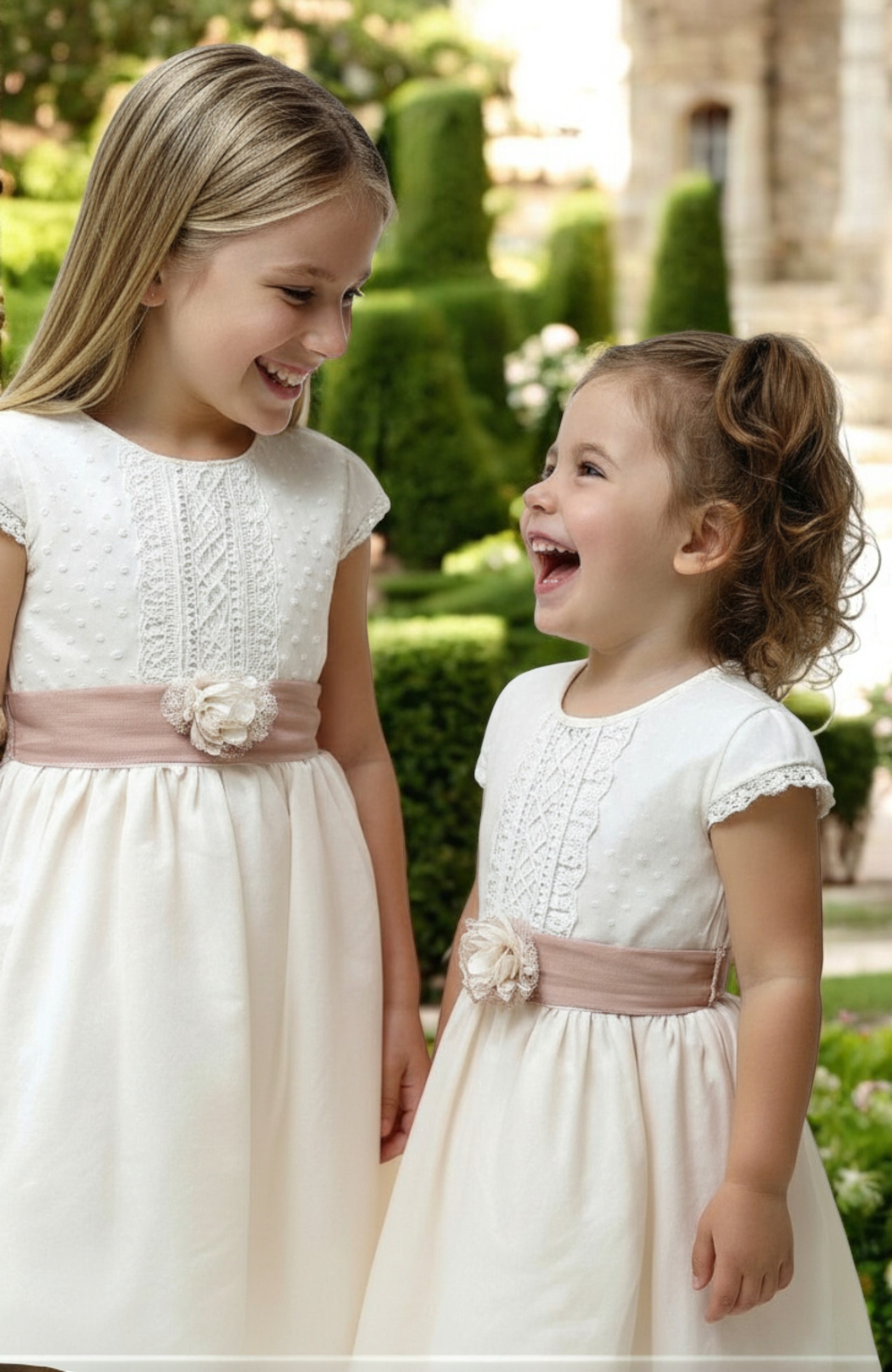 Vestido de niña para Arras y Ceremonia en crudo y rosa empolvado