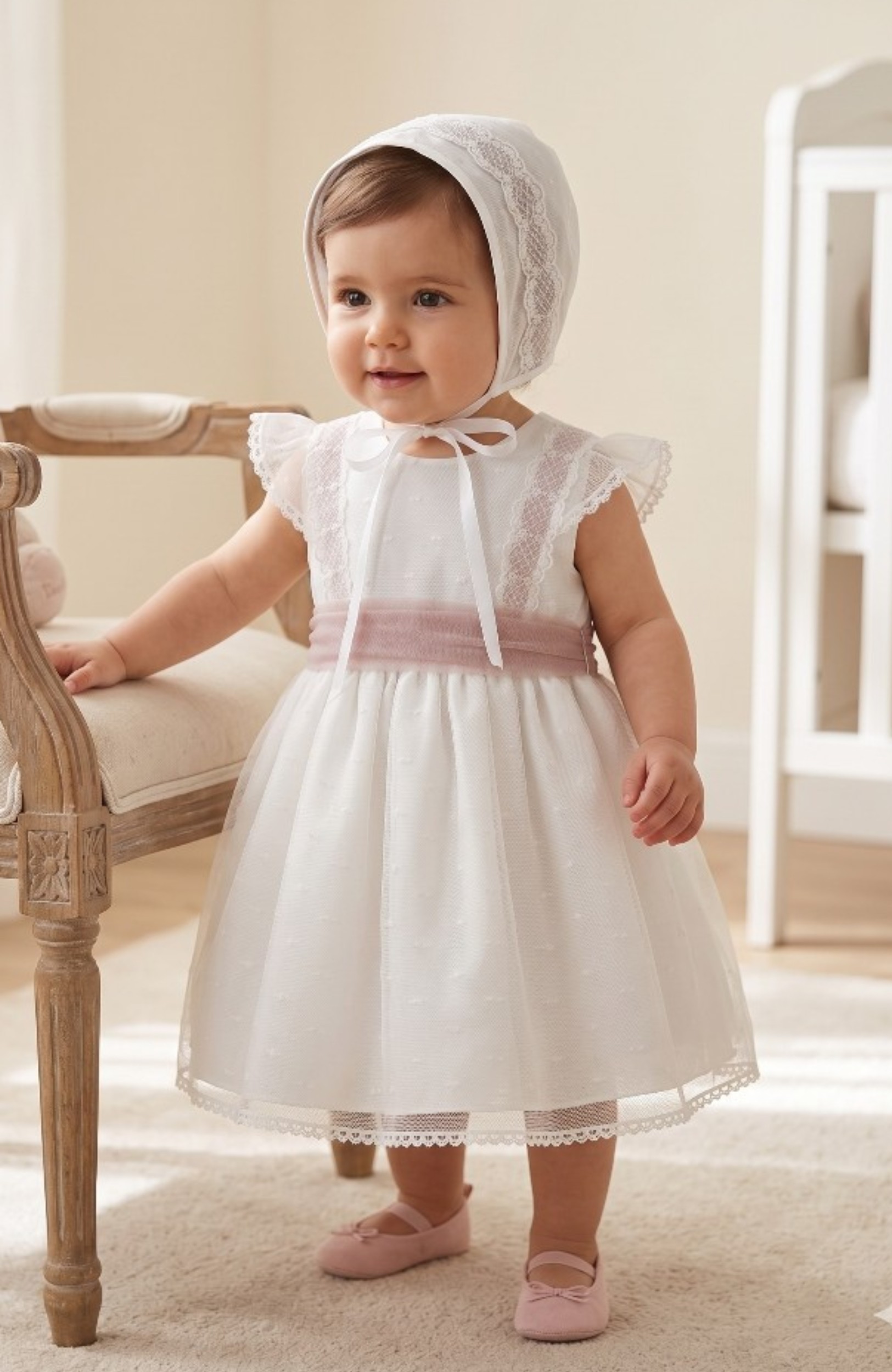 Una capota pensada para completar el look de Bautizo con equilibrio, aportando ese toque tradicional y atemporal que transforma el conjunto en un recuerdo inolvidable.