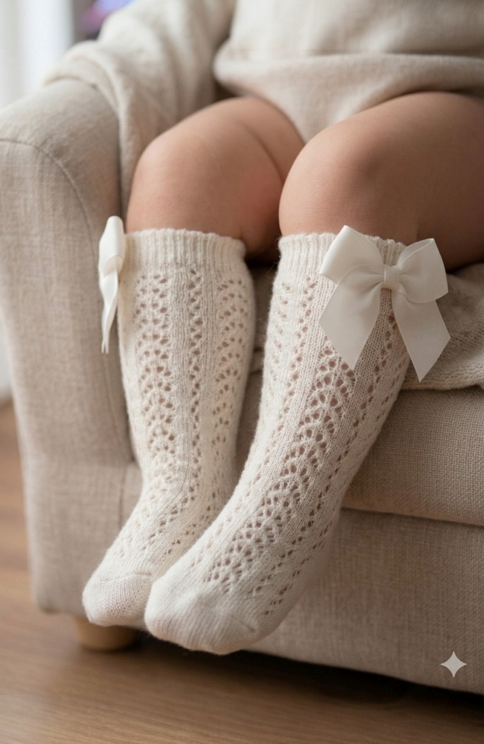 Media calada de perlé con lazo en color crudo – Cóndor. Dulzura y elegancia para los primeros momentos inolvidables