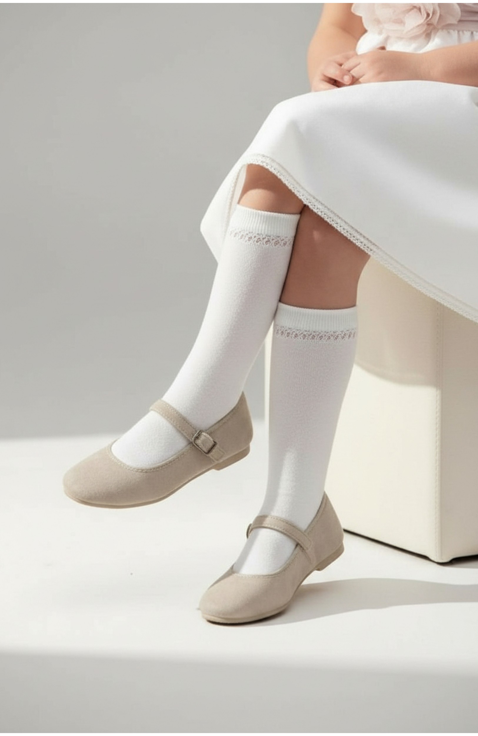 Merceditas de niña de terciopelo en tono camel. Un básico elegante que combina con vestidos de todo tipo