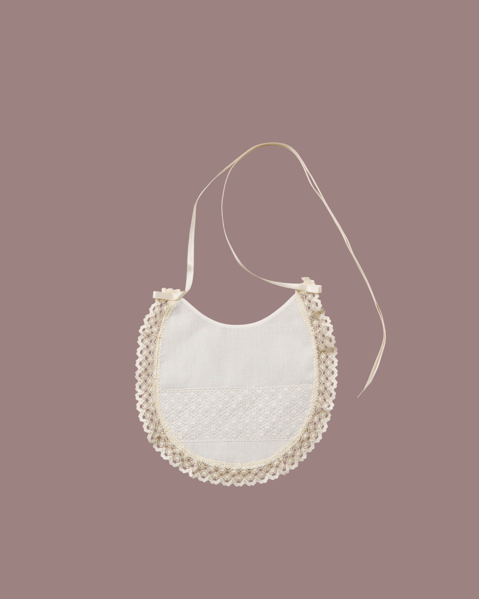 Los pequeños lazos de raso a ambos lados y la cinta para anudar suavemente al cuello aportan un toque de distinción y permiten un ajuste cómodo. Es el accesorio ideal para evitar que las babitas arruinen el look sin romper la estética del conjunto de ceremonia.