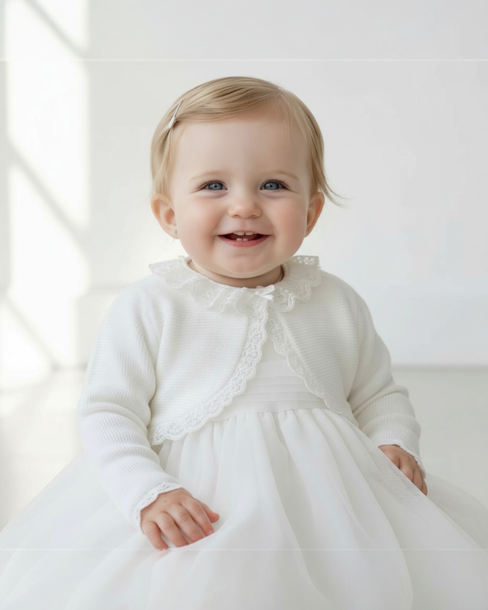 Ideal para Bautizos, cumpleaños o celebraciones familiares donde la elegancia infantil es protagonista, esta chaqueta garantiza comodidad durante todo el día gracias a su ligereza y adaptabilidad.