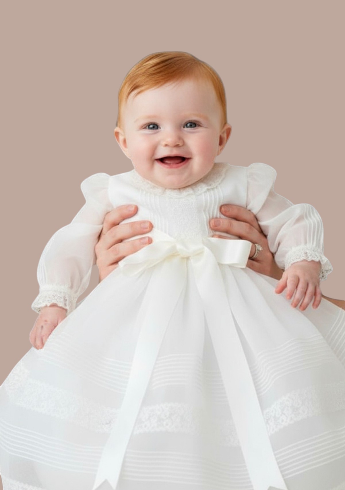 Elegido por influencers y familias que aman lo clásico, este faldón de Bautizo en color crudo será el protagonista de unas fotos espectaculares que guardarás con ternura y emoción toda tu vida. Cada detalle de esta prenda simboliza la belleza de las tradiciones que pasan de generación en generación.