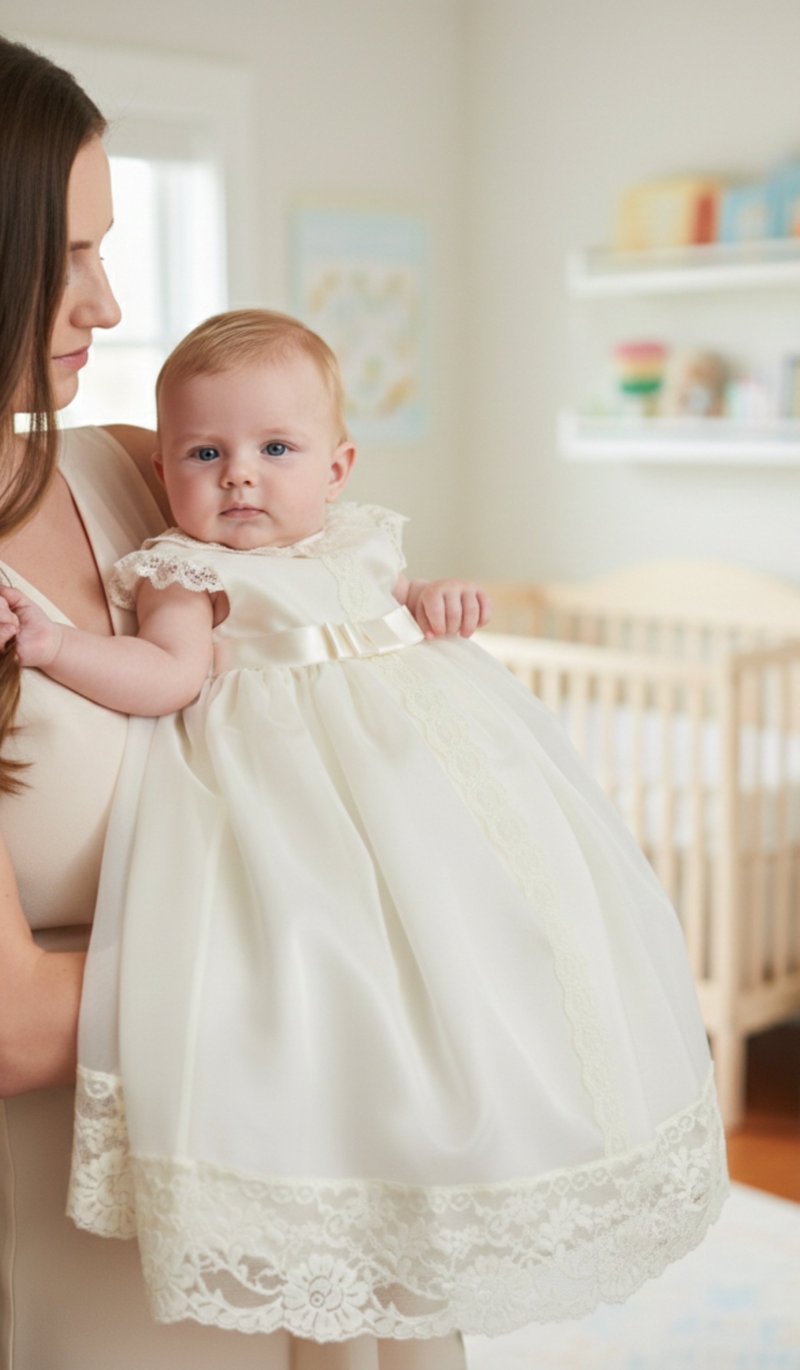 Pensado para acompañar un día completo de Ceremonia de Bautizo, abrazos, reportaje y celebración familiar: tejidos suaves, movimiento ligero y un acabado impecable. Recomendación Vuvalu: añade un body de algodón 100% debajo y una chaquetita fina por si refresca o hay aire acondicionado.