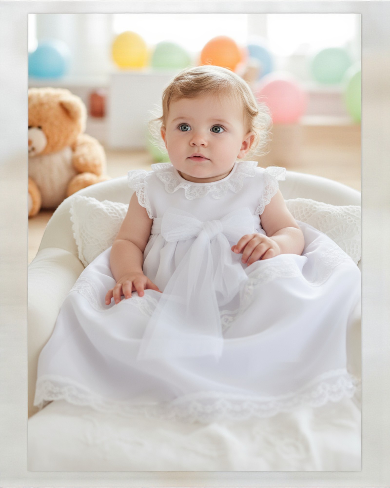 Su tejido suave y transpirable cuida la piel del bebé durante toda la ceremonia, permitiéndole descansar o moverse con total libertad. Puedes completarlo con una toquilla para mantenerle abrigado, unos zapatitos de piel blanditos y un body interior para asegurar el máximo confort durante todo el día.