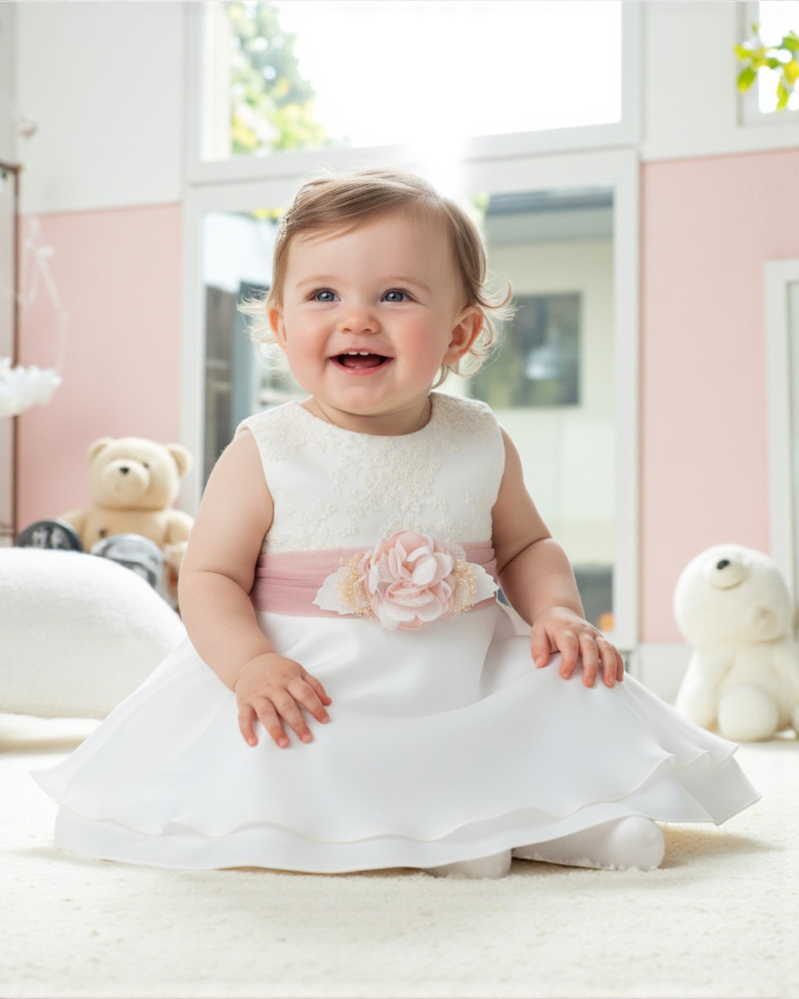 Vestido bautizo niña bebé falda capa fajín rosa Zoe