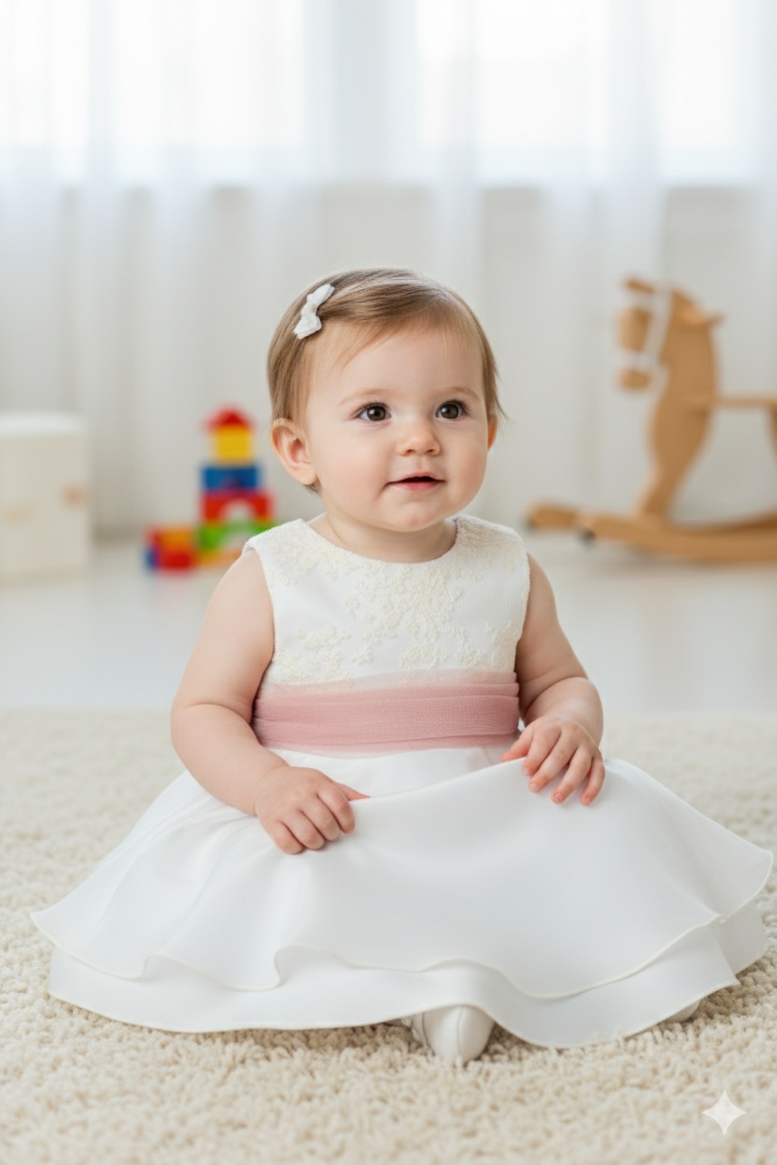 El día del Bautizo o esa primera celebración importante quedará para siempre en la memoria… y este vestido será parte esencial de ese recuerdo. Diseñado para niñas de 3 meses a 2 años, este modelo combina dulzura, elegancia y un aire romántico que transforma el momento en algo único.