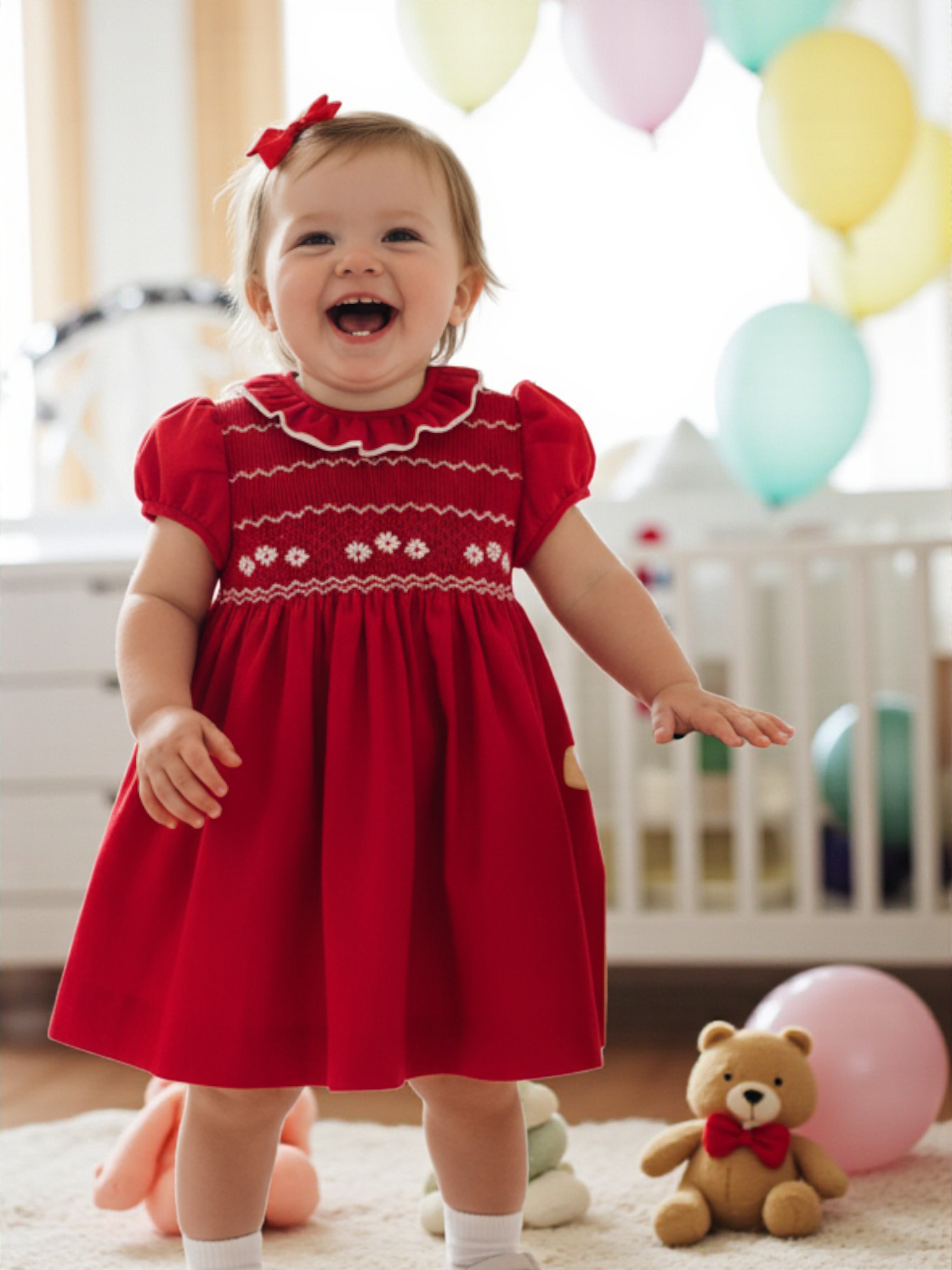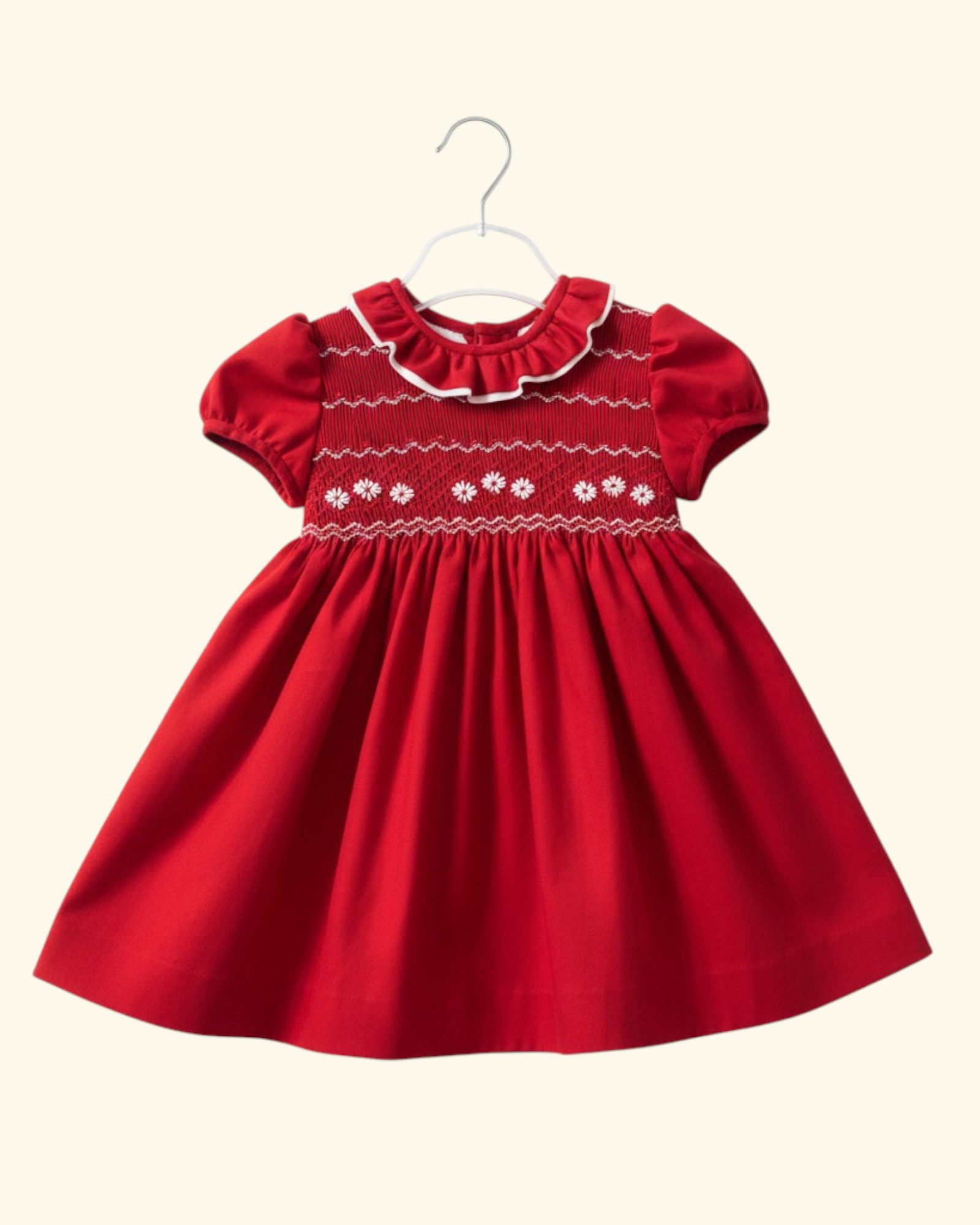Vestido de nido de abeja Daniela rojo – Alegría, tradición y elegancia para los días más especiales