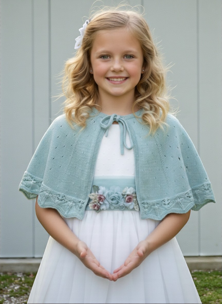 Diseñada para acompañar vestidos y chaquetas de Comunión para niña, esta capa aporta movimiento y ligereza. Su tejido suave y agradable al tacto envuelve sin pesar, respetando la silueta del vestido de Comunión y permitiendo que cada detalle luzca con armonía. La caída fluida aporta un aire etéreo, perfecto para fotografías, iglesia y celebración posterior.