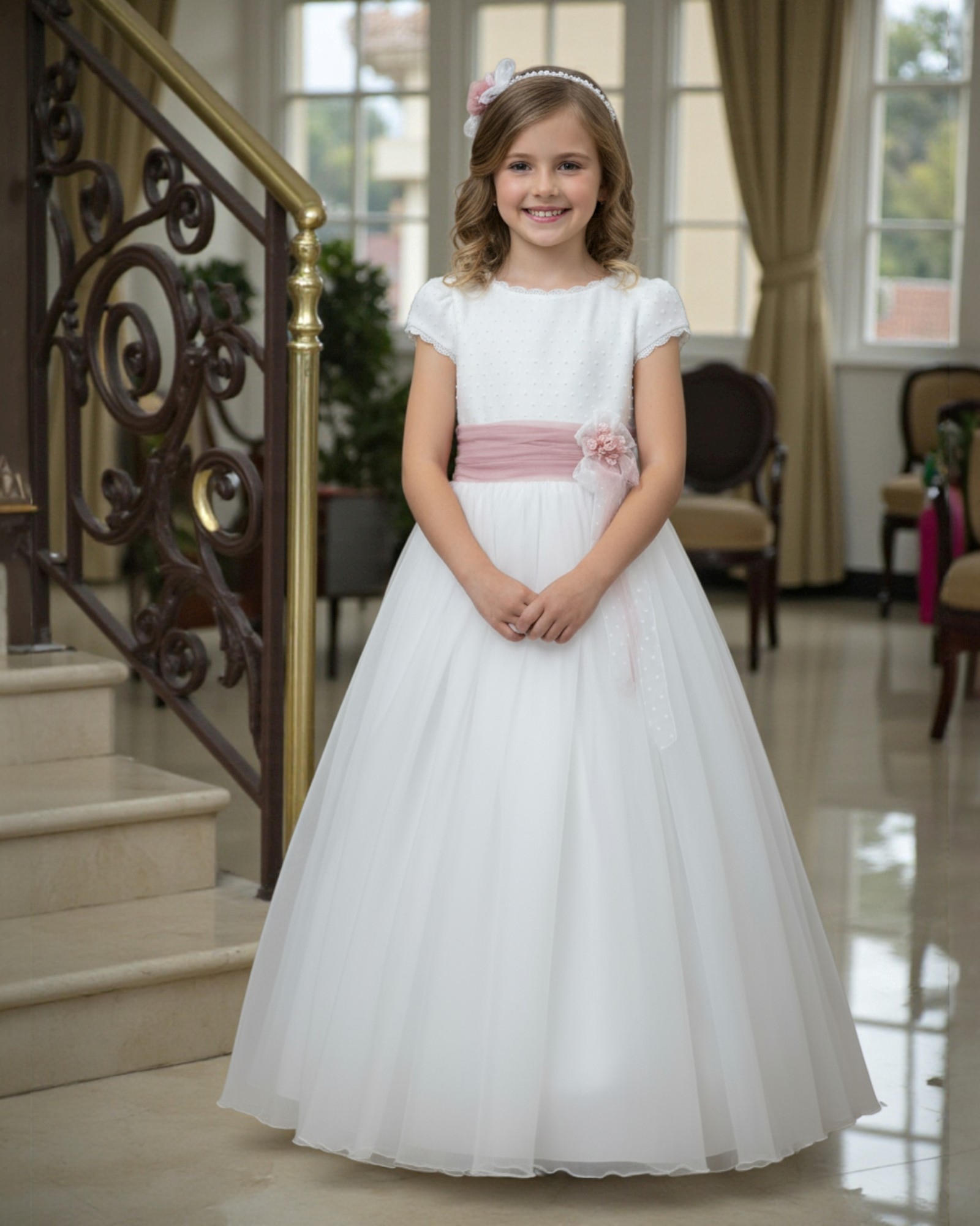 Vestido niña Comunión fajin rosa