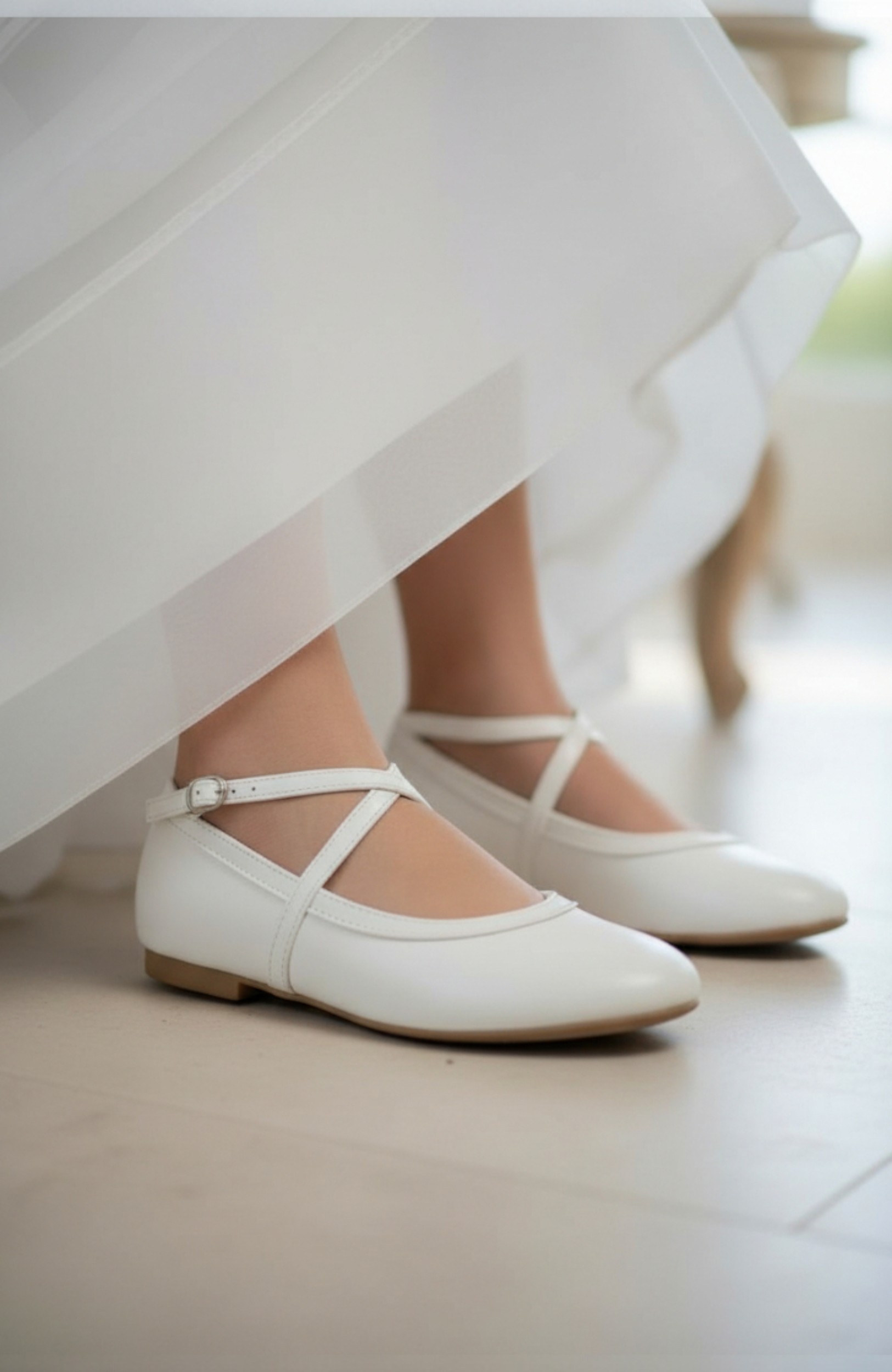 Zapato niña Comunión blanco – Merceditas de piel con tiras cruzadas, elegantes y cómodas