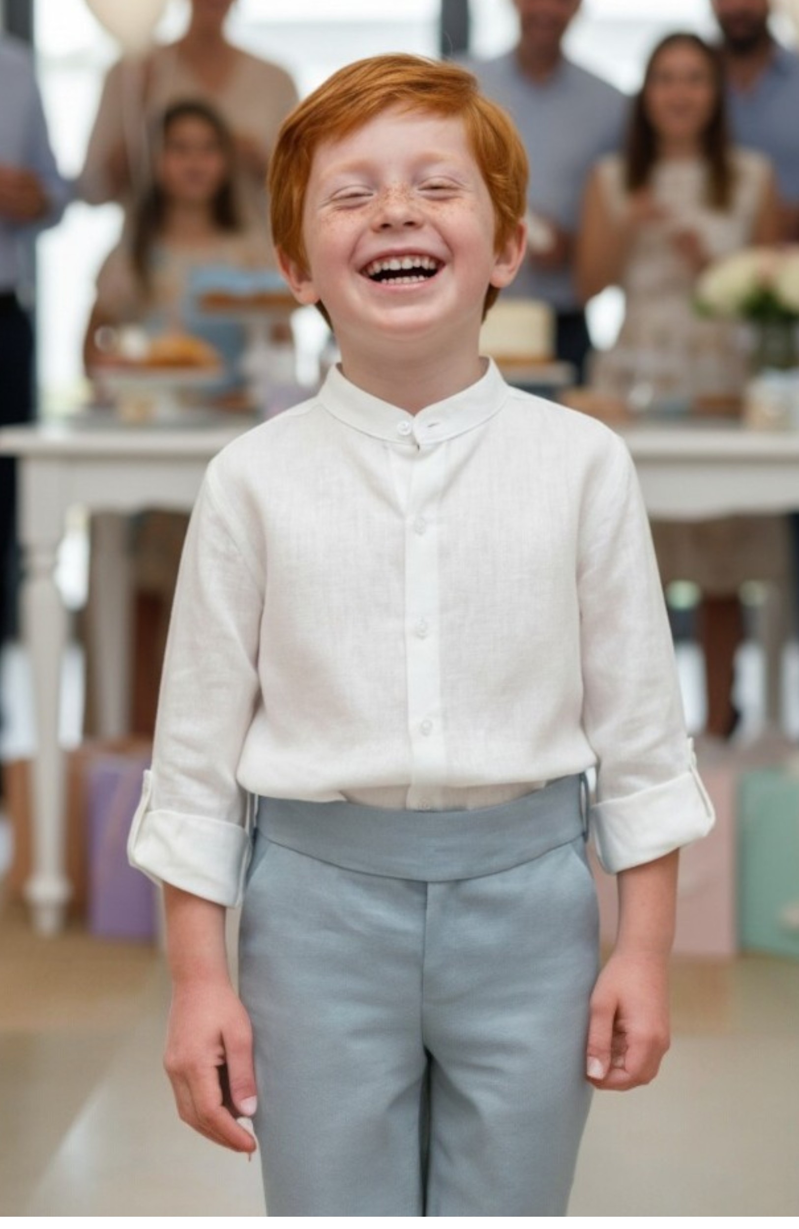 Una mirada profunda, un azul que transmite serenidad, personalidad y buen gusto-Conjunto niño lino ceremonia océano