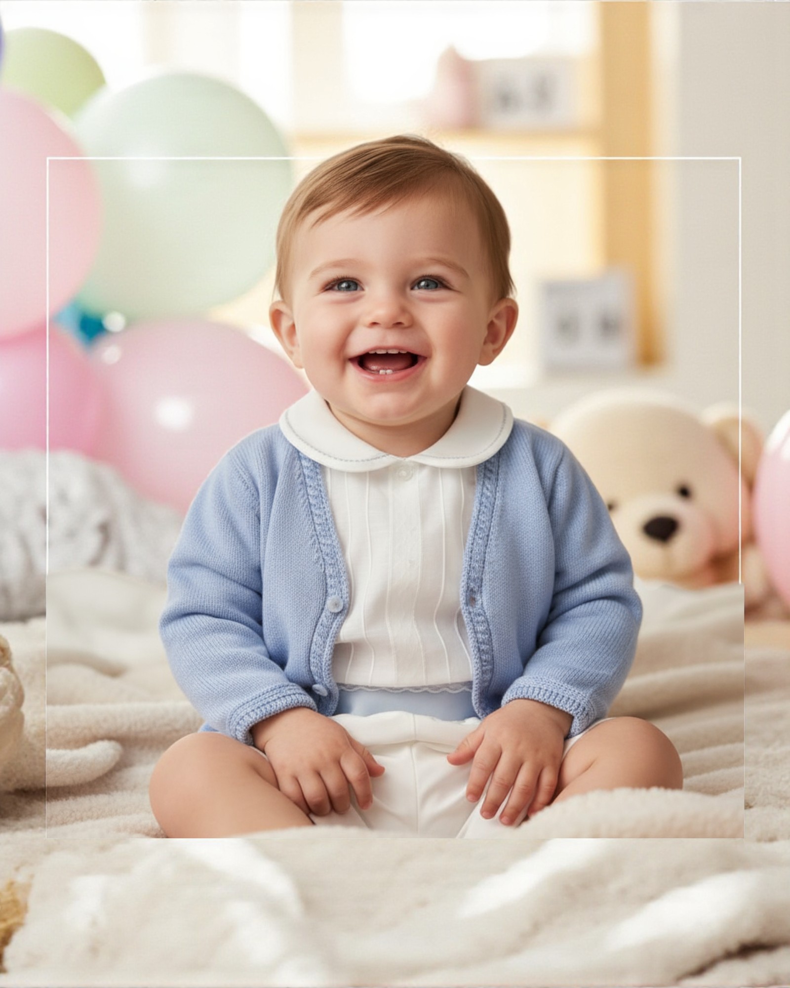 En los días donde todo gira en torno a una celebración especial, donde la familia se reúne y las emociones están a flor de piel, cada detalle cuenta. Esta chaqueta de punto para bebé niño en azul cielo ha sido diseñada para acompañar con elegancia y ternura esos grandes momentos: bautizos, bodas, cumpleaños o eventos familiares donde tu pequeño es el centro de todas las miradas.