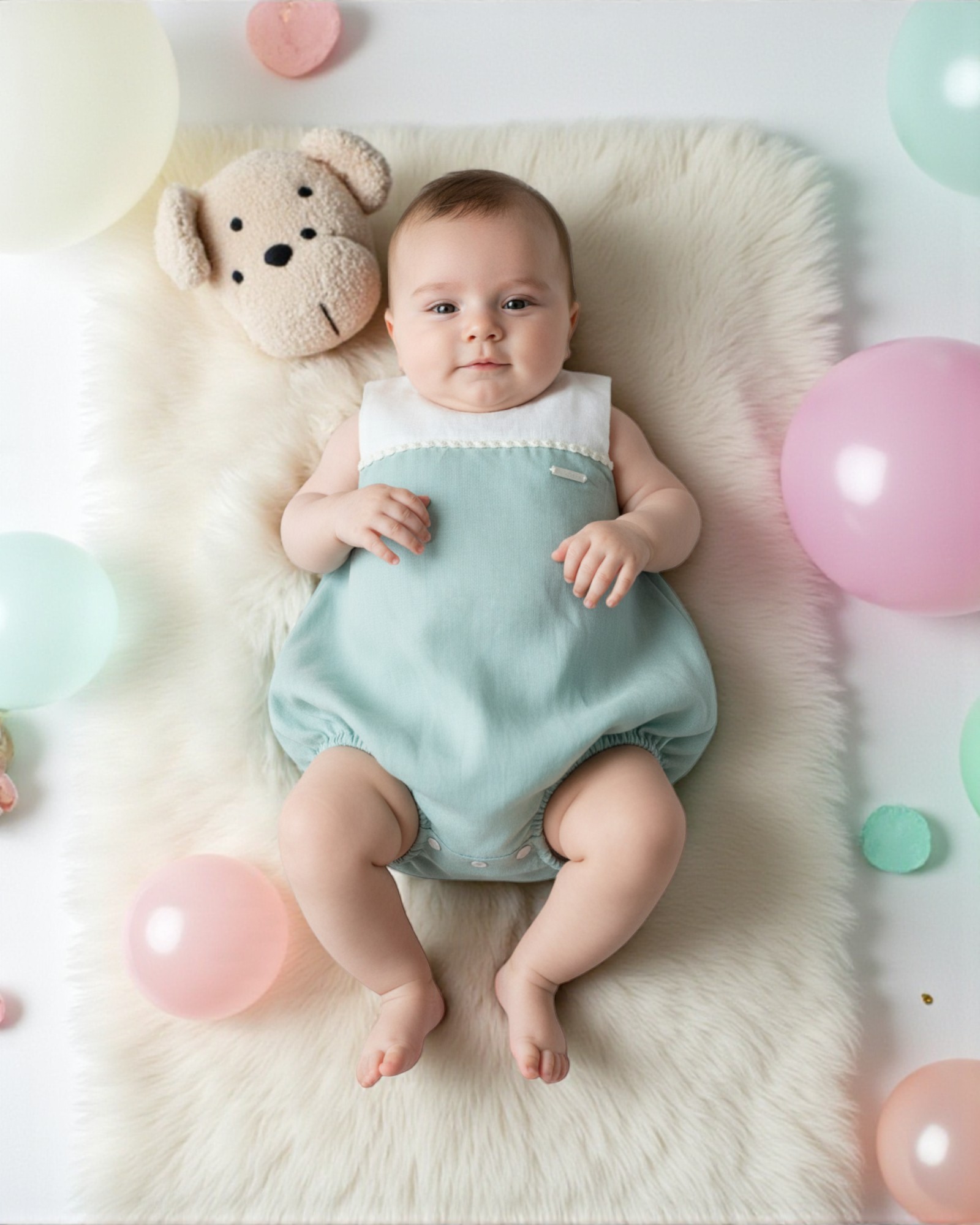Añade una chaquetita ligera en color crudo o verde agua por si hay aire acondicionado o refresca. No olvides poner debajo un body de algodón 100%, ideal para cuidar su piel y asegurar su comodidad. Unos pepitos a juego y los clásicos calcetines o leotardos Cóndor terminarán de vestir al pequeñín con dulzura y elegancia.