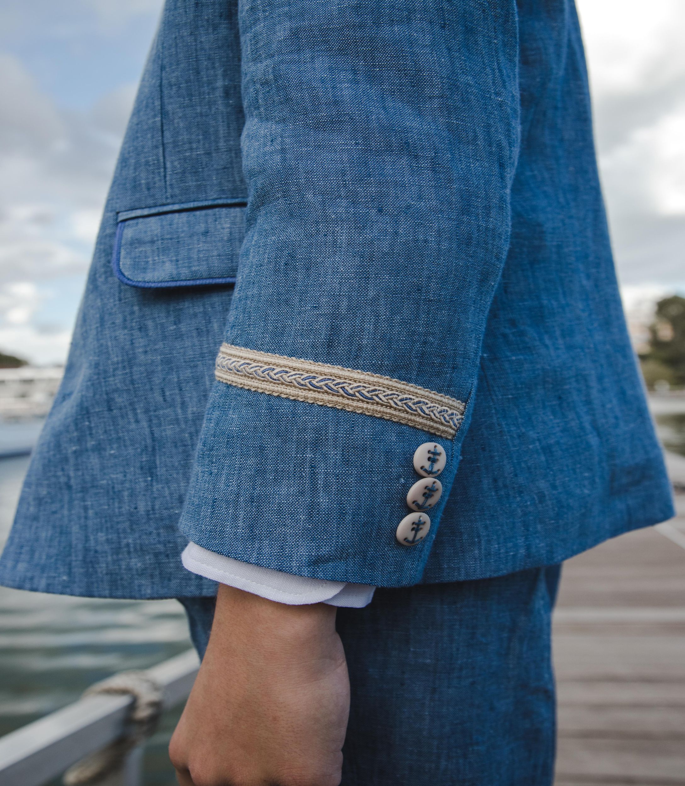Un aire clásico renovado con la frescura del lino-Traje de Comunión Almirante lino azul cuello mao