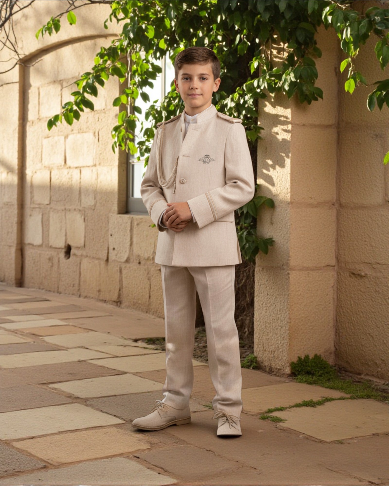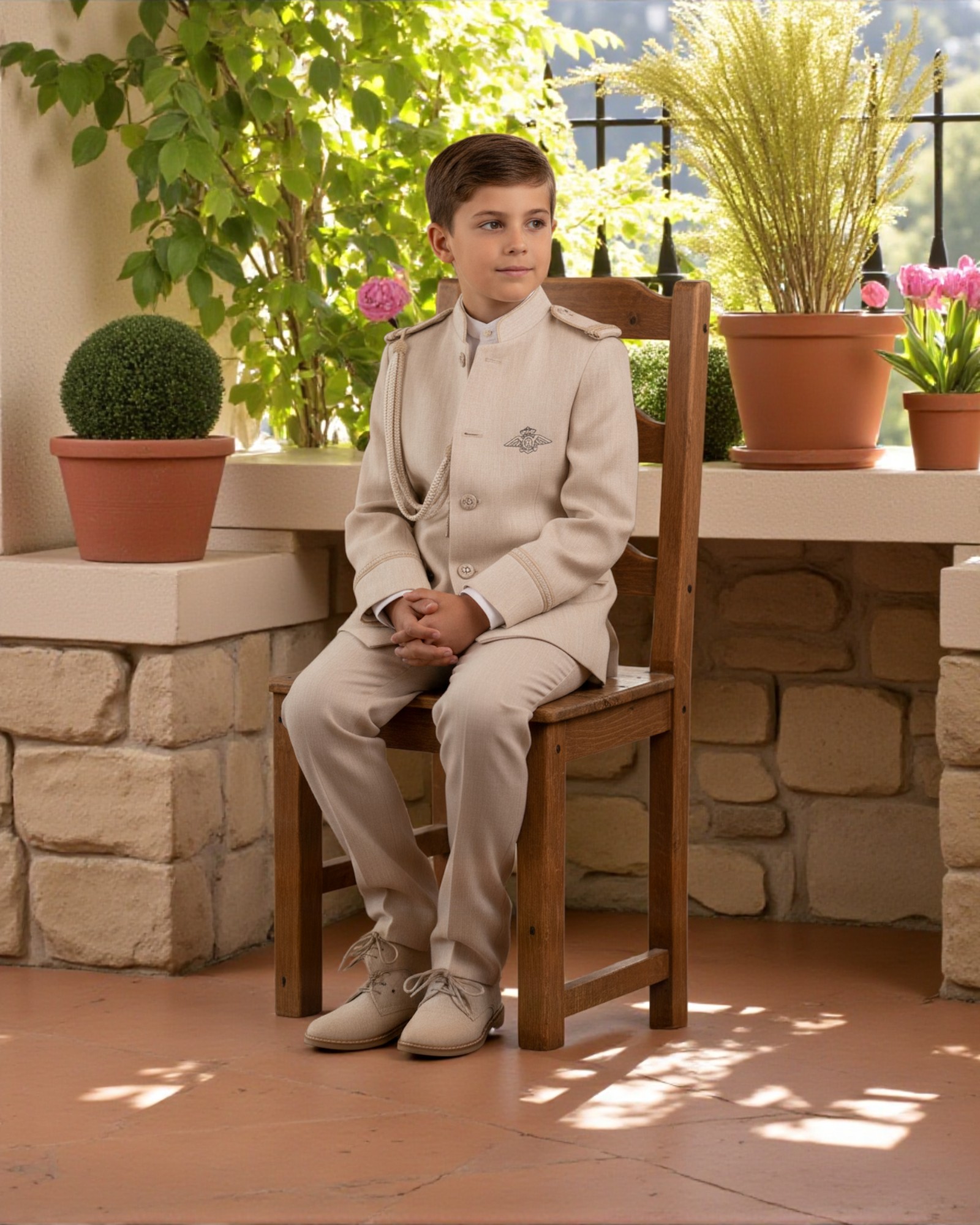 Traje de Comunión Almirante lino tostado cuello mao Pietro