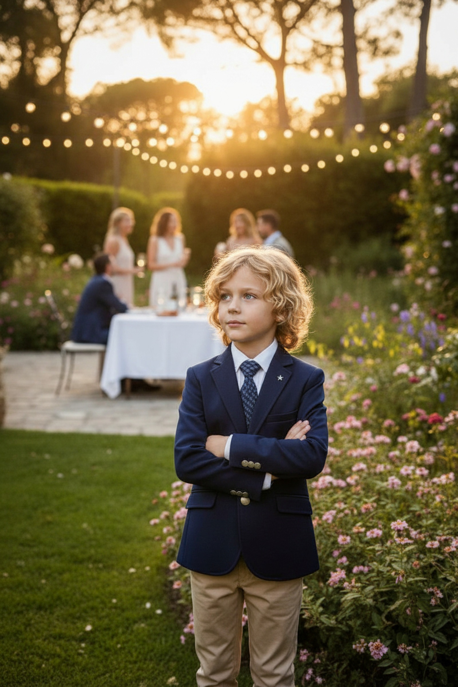 Hay prendas que transforman por completo la presencia de un niño. Esta americana azul marino lo consigue al instante: estructura el cuerpo, eleva el estilo y transmite elegancia con la naturalidad que solo la moda infantil bien hecha puede lograr.