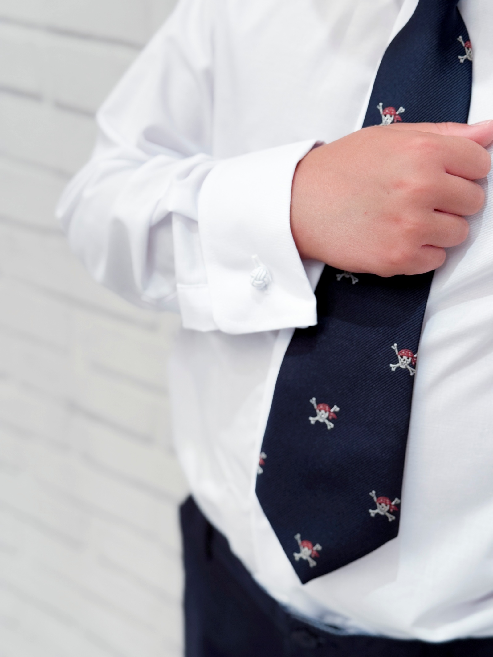 Camisa niño cuello italiano blanca con puños dobles con gemelos